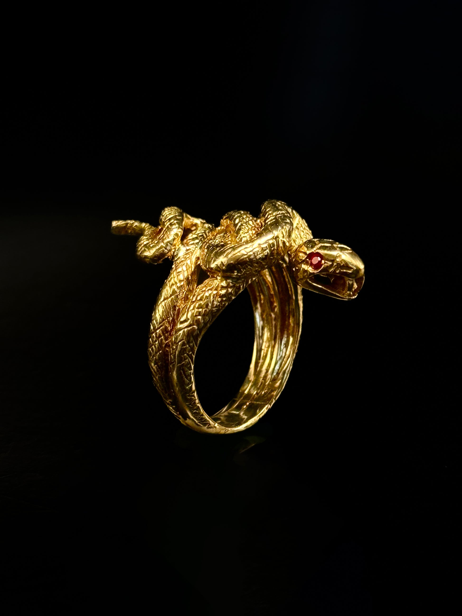 Bague serpent en or 18 carats, avec des rubis sertis dans les yeux.