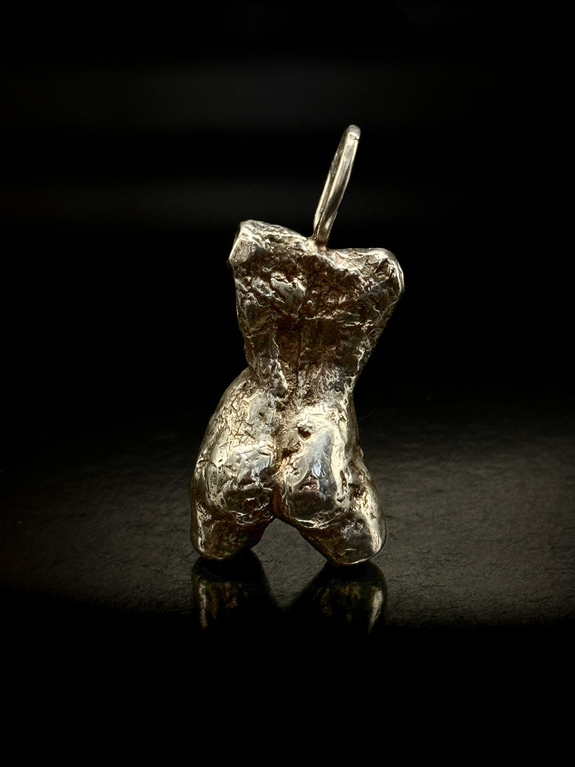 Pendentif en bronze argenté et rubis au nombril.