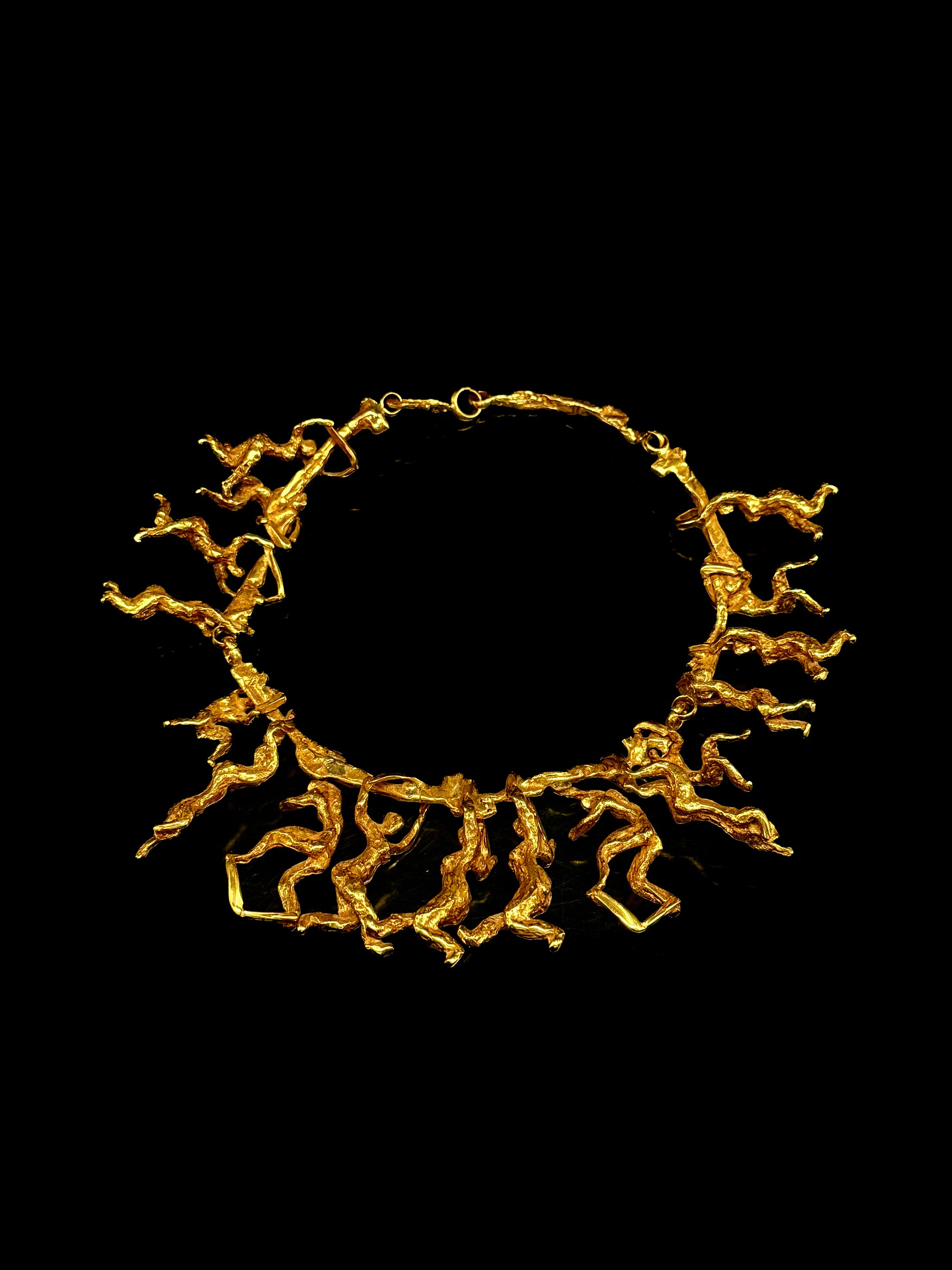 Collier semi-rigide sculpté d'une séquence de 17 figures dansantes.