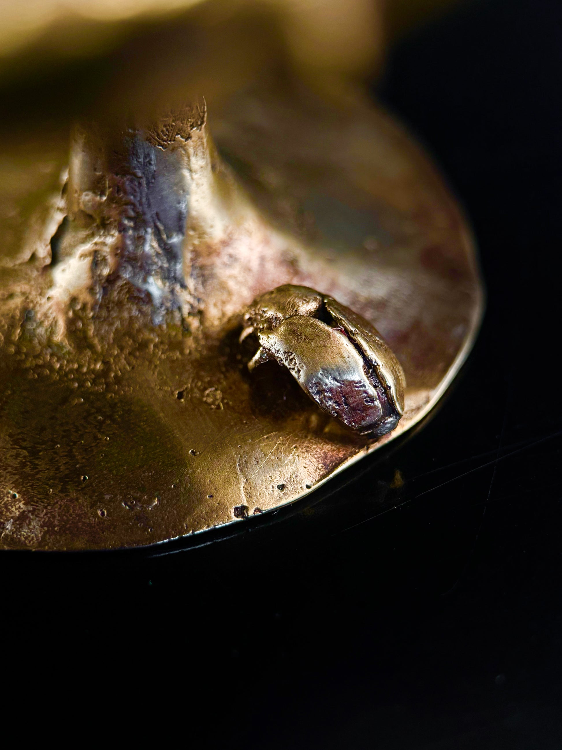Coupe en bronze doré ornée de motifs d'insectes.