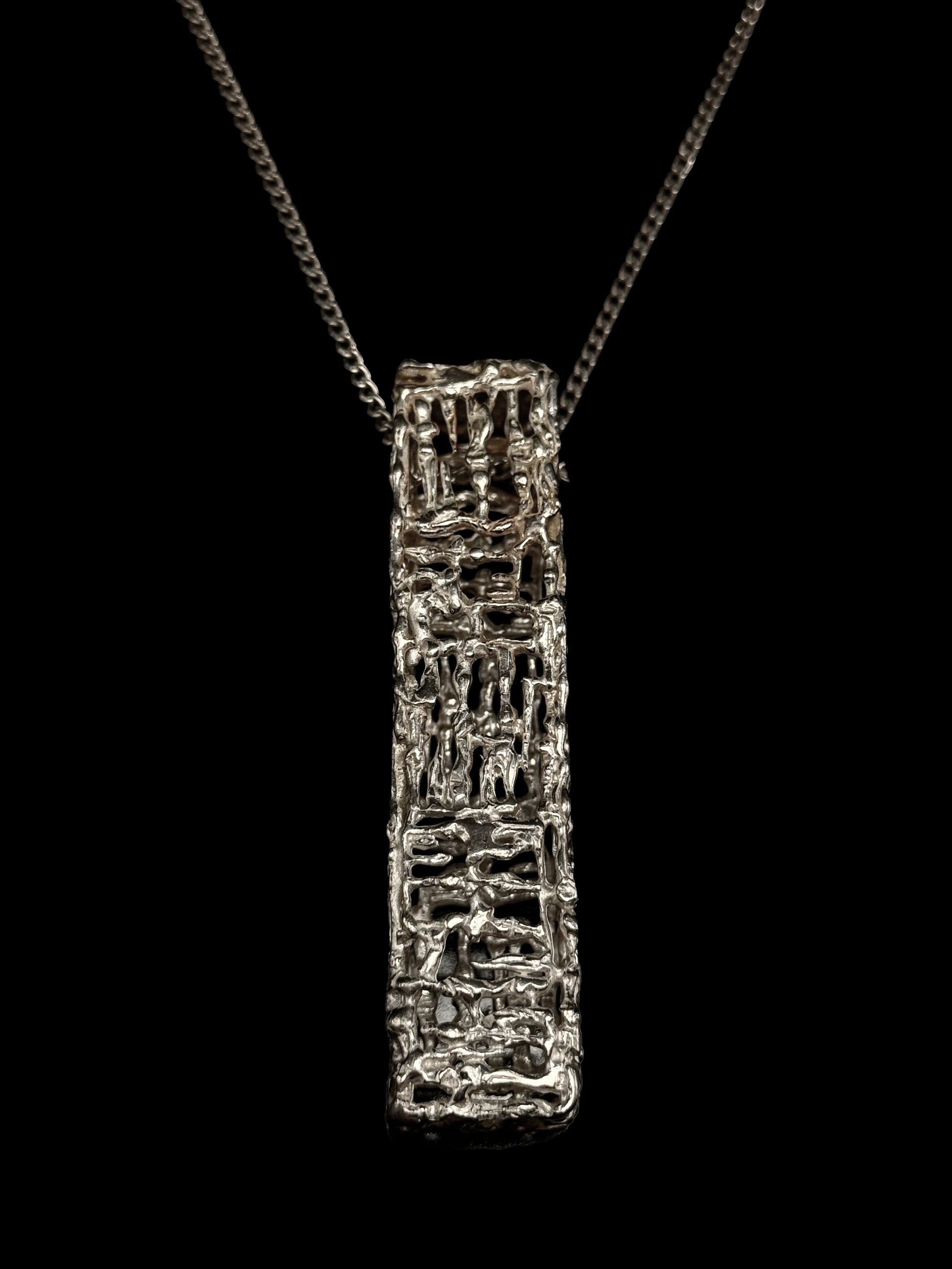 Collier pendentif cage rectangulaire en argent.