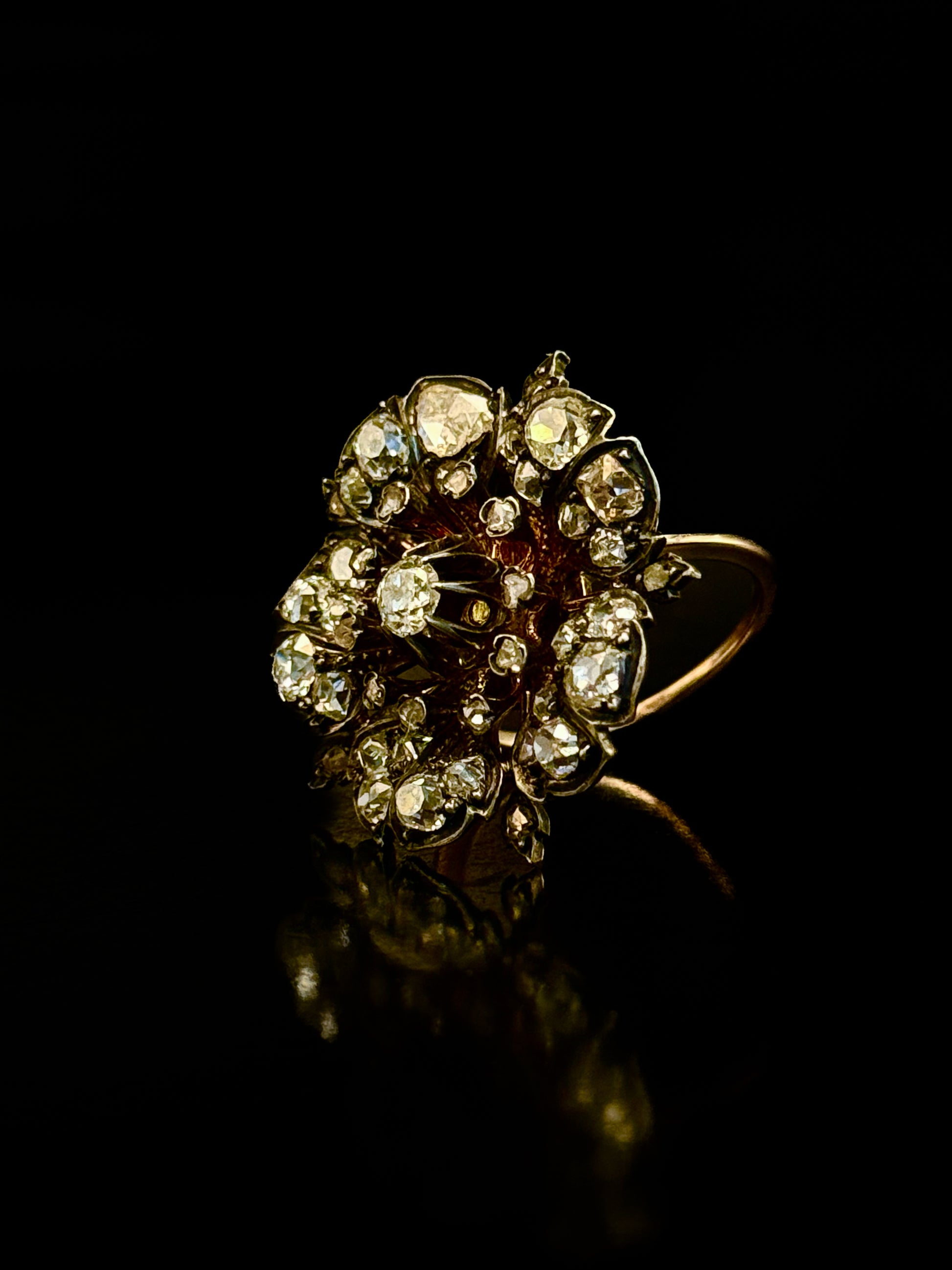 The flower may originally have been an element of a brooch, the setting appears to have been added at a later date.