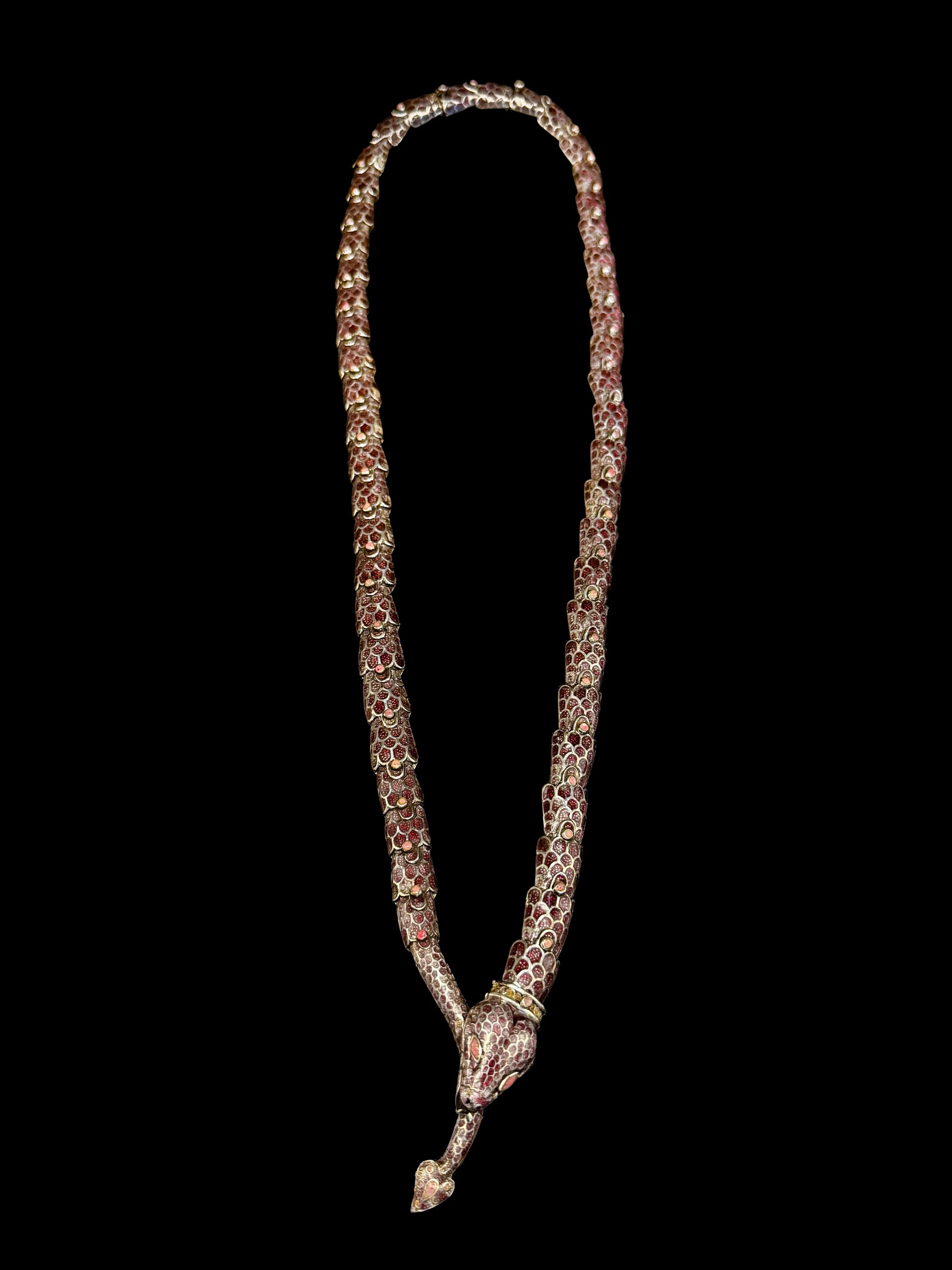 Enameled snake silver necklace.