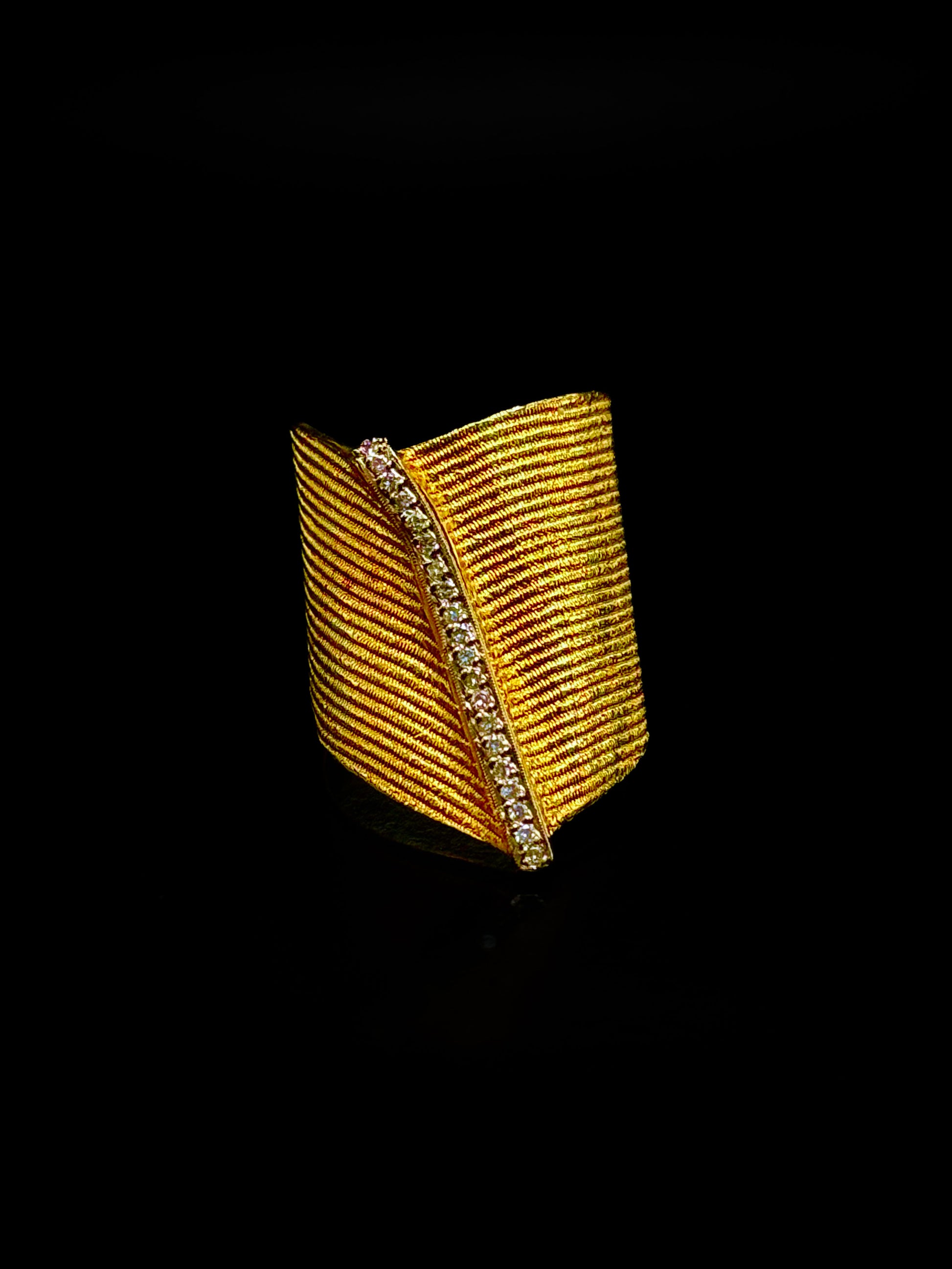 Diagonal band ring in 22 carats gold set with diamonds.