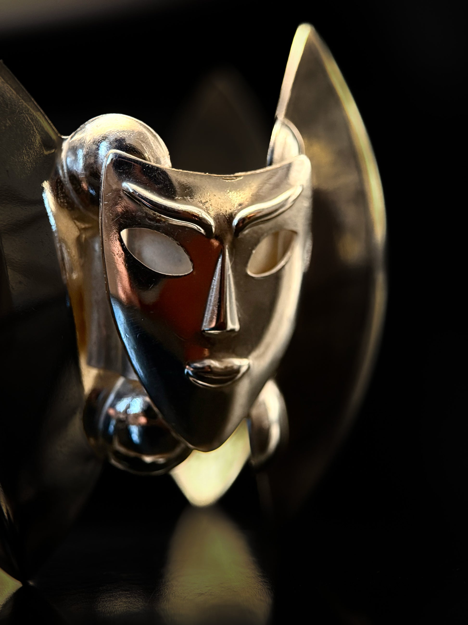 Articulated mask bracelet in silver.