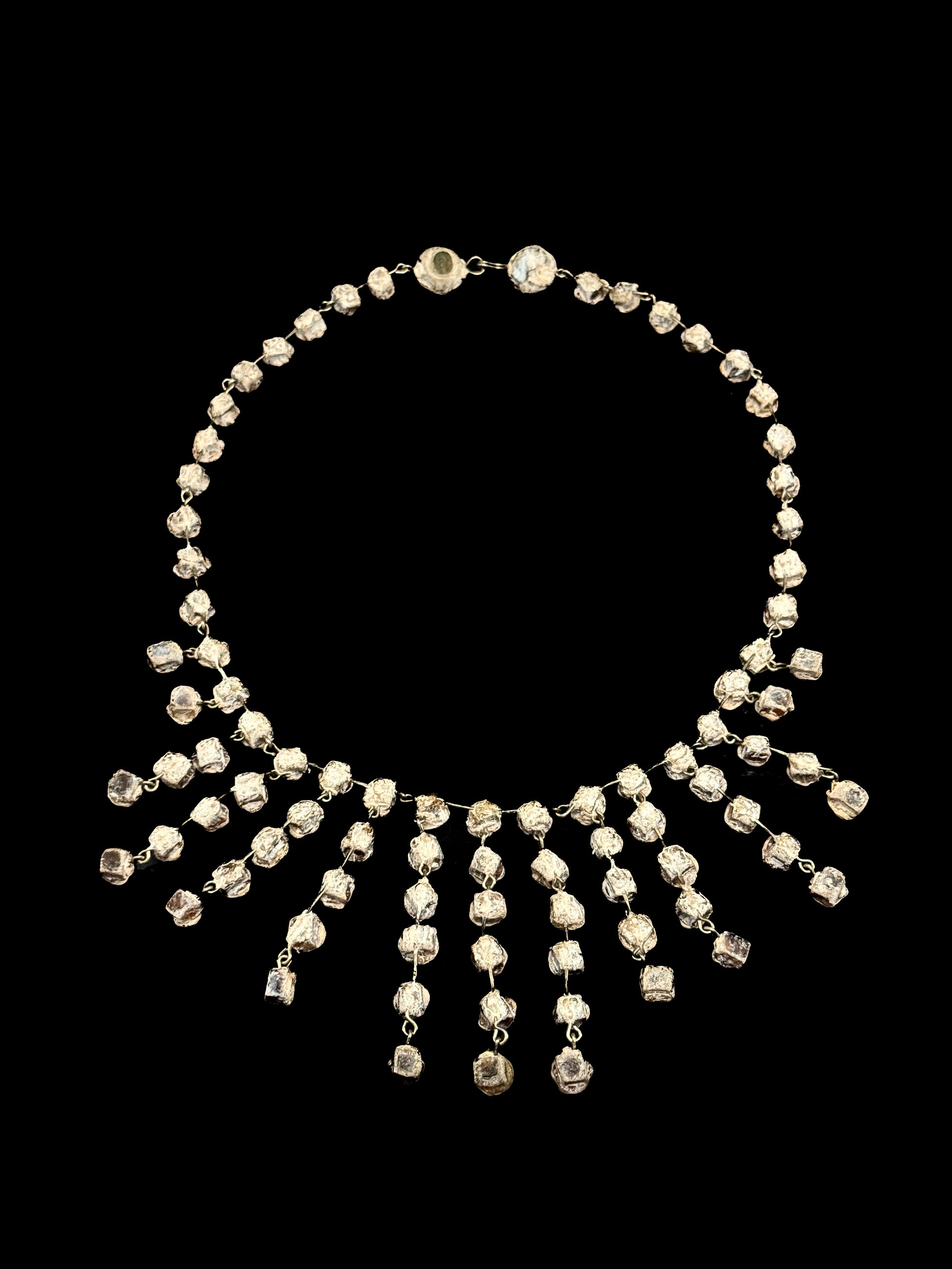 Necklace in light beige talosel and green mirrors.